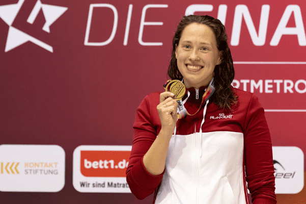 Im vergangenen Jahr war Celine Rieder bei den Olympischen Spielen in Tokio (JPN) über 1500m Freistil gestartet, auf dieser Strecke hat sich auch für die Europameisterschaften in Rom (ITA/11. – 21. August) qualifiziert. An diesem Wochenende wagte die 21-Jährige von der Sport-Union Neckarsulm nun einen Abstecher ins Freiwasser und holte sich bei den Deutschen Meisterschaften in Mölln auf Anhieb den Titel über die olympische 10km-Strecke. Rieder siegte in 2:00:04,28 Stunden mit zehn Sekunden Vorsprung vor Lara Seifert und Leonie Märtens (beide SC Magdeburg), die sie vom Training am dortigen Bundesstützpunkt beide bestens kennt.