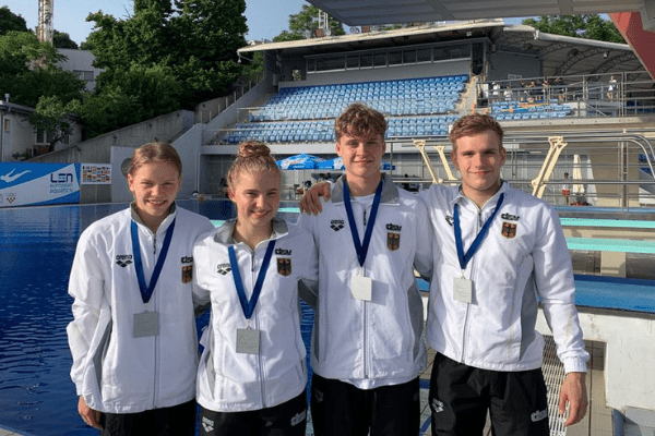 Der DSV-Nachwuchs hat zum Auftakt der Junior*innen-EM im Wasserspringen in Rijeka (CRO) Silber im Teamwettbewerb gewonnen. Jette Müller, Espen Prenzyn…