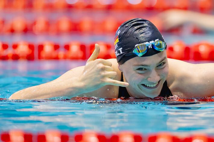 Drei Finals auch für Jeremias Pock. Gretchen Walsh (USA) und Hubert Kos (HUN) gewinnen erstes Meeting.
