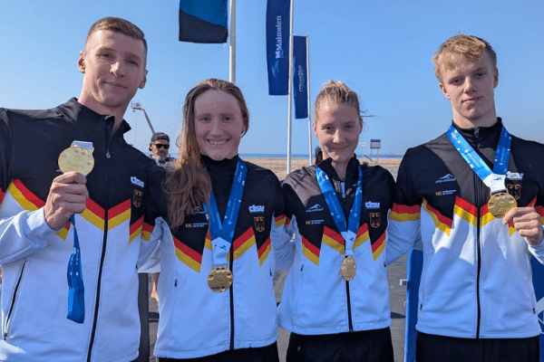 Die deutschen Freiwasserschwimmer*innen haben beim Weltcupfinale in Saudi-Arabien einen goldenen Saisonabschluss gefeiert. Das Team mit Lea Boy (SV Wü…