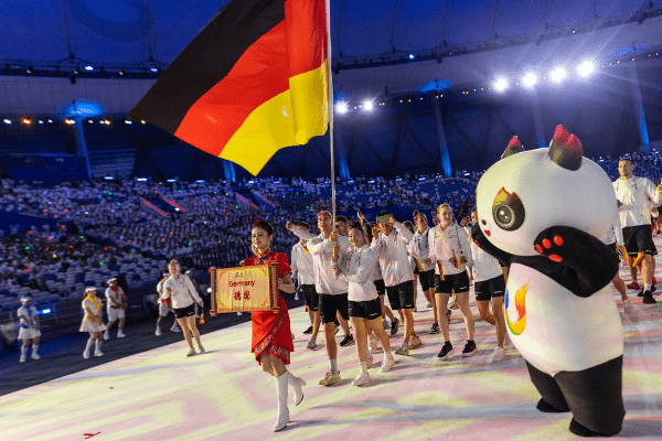 Schwimmer Henning Mühlleitner durfte neben Turnerin Aiyu Zhu das deutsche Team am Freitag bei der Eröffnungsfeier der FISU World University Games in C…