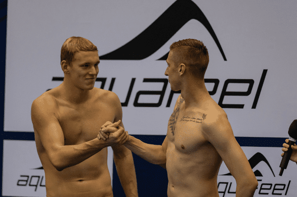 Für das nächste Highlight des Tages sorgte Rekord-Weltcupsieger Chad le Clos. Der neuerdings vom Frankfurter Trainer Dirk Lange betreute Südafrikaner schwamm über 100m Schmetterling in 48,58 Sekunden zu seinem insgesamt 147. Weltcupsieg. „Mir fällt eine Last von den Schultern. Denn ich sehe, dass ich es noch kann, nachdem ich zuletzt nicht immer so wettbewerbsfähig wie gewünscht angetreten war“, sagte der 30-Jährige, der zuletzt sogar über Depressionen berichtet hatte: „Ich hoffe nun natürlich, dass es mit Dirk so erfolgreich weitergeht.“ Für Jubel bei der Gastgebernation sorgte zudem Marius Kusch. Der 29-Jährige meldete sich nach einem Pausenjahr ohne Wettkämpfe eindrucksvoll zurück und wurde in 50,19 Fünfter. Als Vorlaufschnellster (49,88) war er am Vormittag sogar noch etwas schneller gewesen. „Das war ein guter Auftakt für mich, auch wenn ich am Abend gern noch etwas schneller gewesen wäre“, sagte der Kurzbahn-Europameister von 2019.
