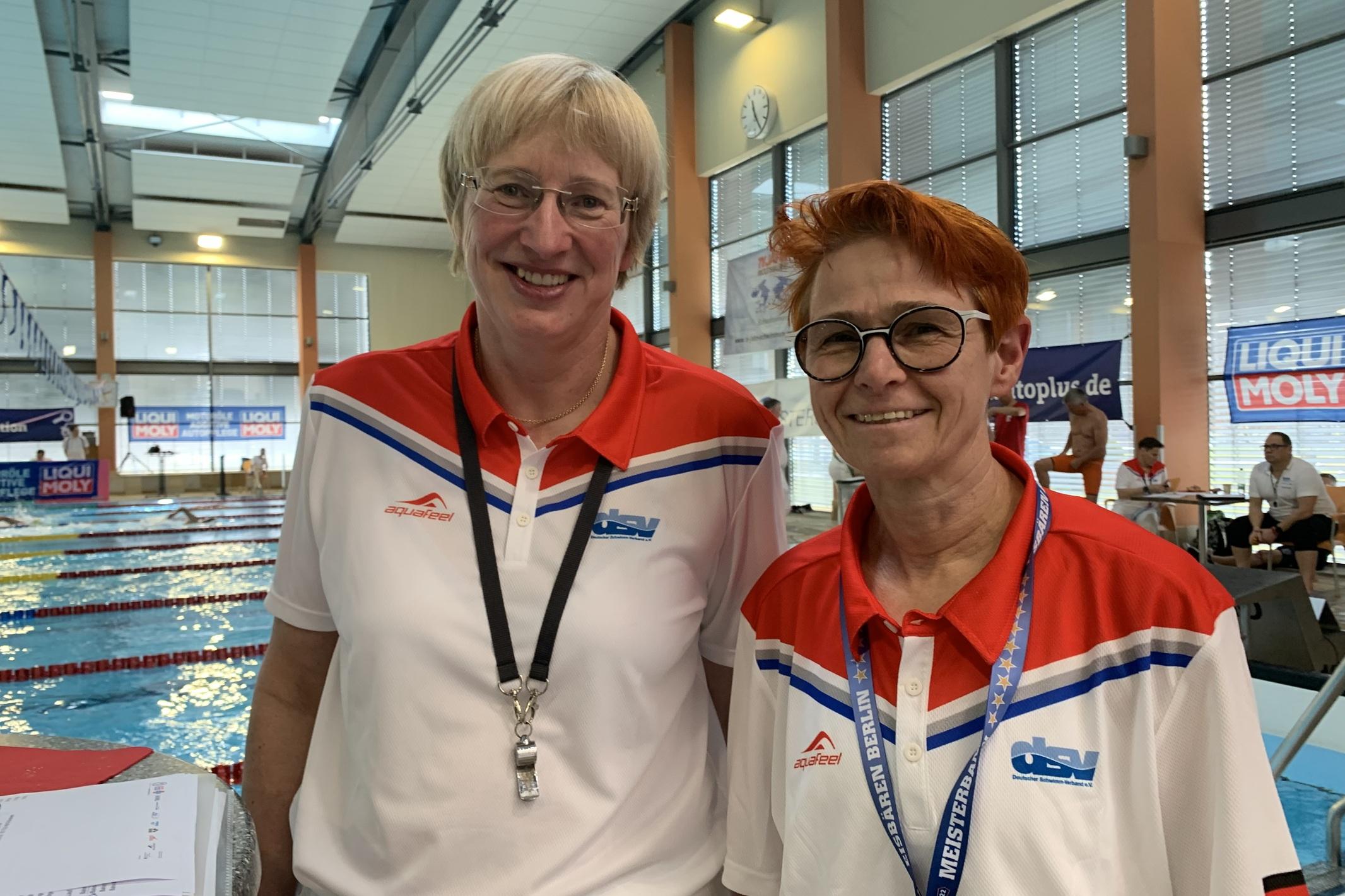 Auch bei unseren bewährten Sprechern Rolf Herrmann und Carsten Bentlage haben wir einmal nachgefragt, was sie mit den Masters-Veranstaltungen verbinden. Sie antworten: Die familiäre und entspannte Atmosphäre, die Dankbarkeit der Athletinnen und Athleten, die Möglichkeit neue Schwimmhallen und Orte kennenzulernen und die tolle Zusammenarbeit mit dem DSV-Kampfrichterteam und Ausrichtern bundesweit. Neben toller Musik und guter Laune haben uns die beiden mit vier Kilogramm HARIBO in Wolfsburg versorgt.