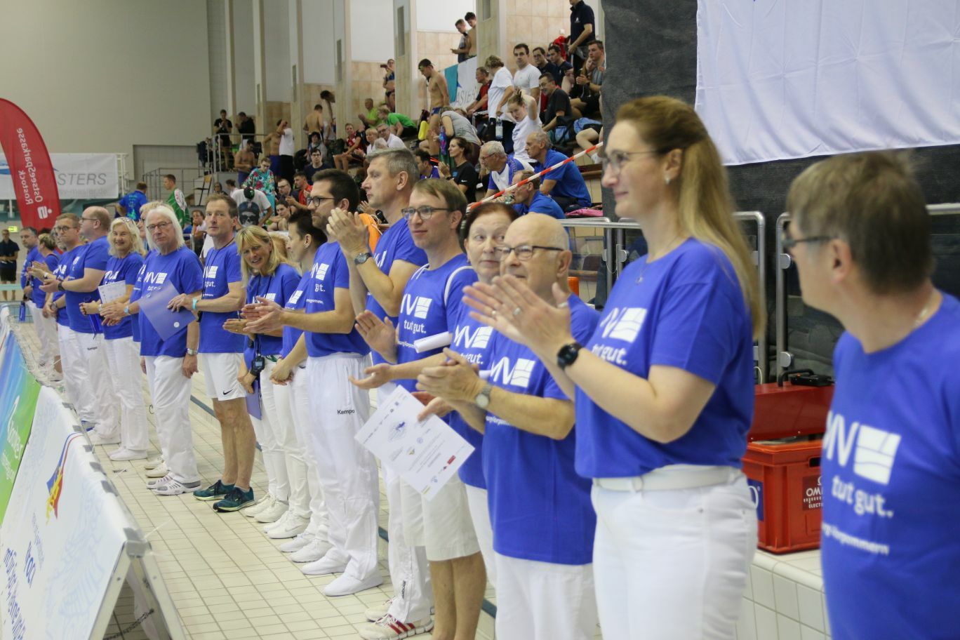 Mit dem ersten Start über 200m Lagen der Frauen beginnen die deutschen Kurzbahnmeisterschaften der Masters in Rostock. Rund 800 Aktive haben für die dreitägigen Wettkämpfe im Neptun-Bad gemeldet. Sie finden dort perfekte Bedingungen vor, unter anderem steht ein 50m-Becken zum Ein-und Ausschwimmen parallel zu den Wettkämpfen zur Verfügung. >> Alle DKMM-Ergebnisse im Überblick Die Ausrichter des Schwimmverband Mecklenburg-Vorpommern mit Monika Preuss und Andreas Feldmann an der Spitze haben ganze Arbeit geleistet, denn selten bekommen die Masters schon im Vorfeld soviel Aufmerksamkeit: Stadtweit wird mit großen Plakaten für „M(ei)asterhaften Schwimmsport in Rostock“ geworben. Zur Begrüßung waren Vertreter*innen der zahlreichen Sponsoren und des Sportamtes der Stadt Rostock in die Schwimmhalle gekommen. Und nicht fehlen darf natürlich das über 30-köpfige Kampfrichter*innen-Team, die Technik, das Protokoll und die Sprecher*in Rolf Hermann und Jaqueline Thiel. Die Masters sagen schon mal „ein großes Danke“ für euer Engagement!