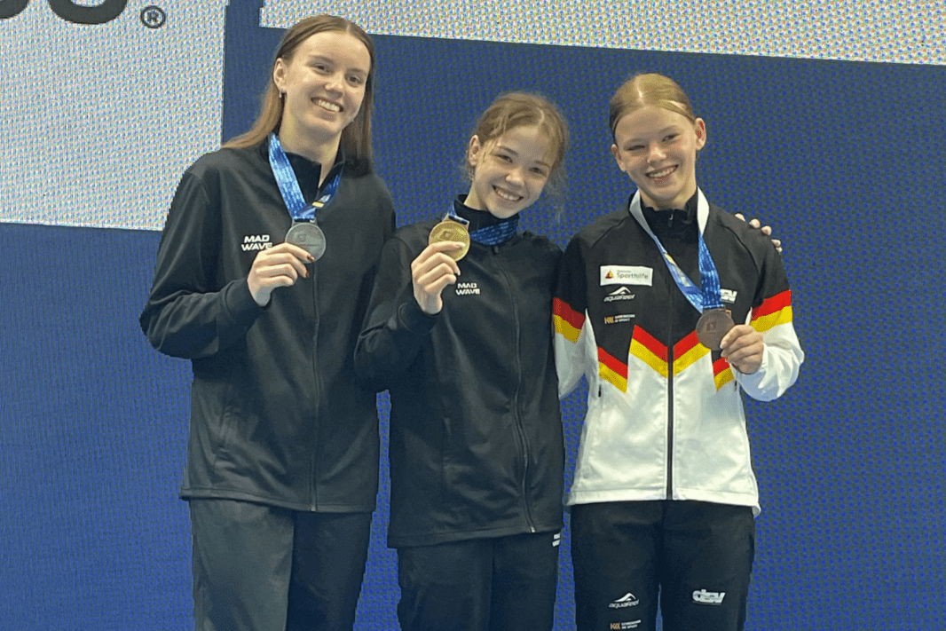 In Athen (GRE) schlägt in diesen Tagen das Herz des europäischen Schwimmsports. Gleich zwei Europameisterschaften der Junior*innen werden in dieser Woche in der griechischen Hauptstadt ausgetragen – die im Synchronschwimmen (ab 25. Juni) und die im Wasserspringen, welche bereits am heutigen Montag eröffnet wurden. Dabei gelang dem Team des Deutschen Schwimm-Verbandes e.V. (DSV) wie im vergangenen Jahr ein goldener Auftakt. Im Team-Event sprangen Mathilda Wendland (Berliner TSC), Louis Aaron Förster, Charlotte Lederer (beide SC DHfK Leipzig) und Tim Kungel (Berliner TSC) mit 332,65 Punkten zum Sieg vor Polen (330,10) und Italien (329,00). Am Ende eines spannenden Wettkampfes im Olympic Aquatic Center, dem Schauplatz der Sommerspiele 2004, lagen die ersten drei Nationen also nur dreieinhalb Punkte auseinander.