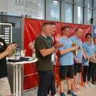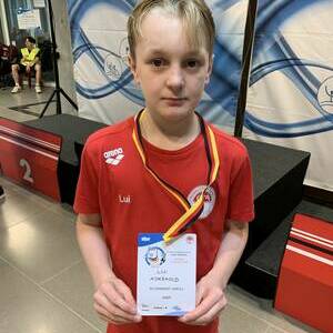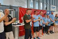 Ein Freudenausbruch im 1. Lauf bei den Damen! Der SFC Nahetal gewinnt in der AK 100+ eine Medaille! Nun wird es auch in der Schwimmhalle feucht! Auch wenn es kein Rekord ist, kein Meistertitel ist. Aber die Freudentränen zeugen davon, dass hier eine Mannschaft gewinnt, die zum ersten Mal in ihrer Geschichte bei der DM eine Medaille in der Staffel erobert. Aber Rekorde sind nun mal das Salz in der Suppe. Um 09.46 meldet die Sprecherin den ersten des heutigen Tages: 4 x 100 m L Herren, AK 100+! Der neue Deutsche Rekord wird von dem Duisburger ST in 4:11,97 aufgestellt. 100 m Schmetterling: Susanne Reibel- Oberle (AK 60) verbessert ihren eignen Rekord auf 1:14,67. Und wenn sie ins Wasser springt, geht es selten ohne Rekord aus. Über 50 m Freistil schwamm sie den nächsten: 0:30, 07. Am Nachmittag kam dann noch der neue Rekord über 200 m Freistil in 2:30.36 dazu. Weltrekord!!!! Wettkampf 21, Lauf 19, AK 35, Stefano Razeto!!! 50 m Freistil 0: 22,72. Der zweite nach seinem Weltrekord über 50 m Schmetterling vom gestrigen Tage. Sehr wichtig ist für die Wettkampfabteilung Masterssport bei jeder Meisterschaft, sich beim durchführenden Verein zu bedanke. Und das passiert natürlich auch heute wieder. Ulrike Urbaniak, die Chefin der Abteilung, nahm die Vorstellung der bienenfleißigen Männer und Frauen vor und bedankte sich im Namen der Sportler und der Kampfrichter, die sich hierin Bad Cannstadt umhegt und umpflegt fühlten. Aber auch Schwimmwart Christoph Roth vom SV Württemberg und Vorstandsmitglied vom SV Canstatt Jürgen Merz bedankten sich bei den Masters. Sie laden die Masters zu einem weiteren Event in 2025 ein. Damit ist das Fazit des heutigen Tages: 4 Deutsche Rekorde, 1 Europa – und ein Weltrekord!