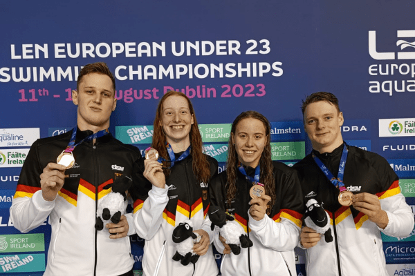 Aller guten Dinge sind drei, das galt für Schwimmerin Isabel Gose auch bei den U23-Europameisterschaften in Dublin (IRL). Über 1500m Freistil schwamm die 21-Jährige vom SC Magdeburg am Sonntag in 16:02,89 Minuten bereits zu ihrem dritten Gold bei diesen Titelkämpfen, dahinter machte diesmal Celine Rieder (Sport-Union Neckarsulm/16:23,17) den dritten deutschen Doppelsieg auf den langen Freistilstrecken perfekt.