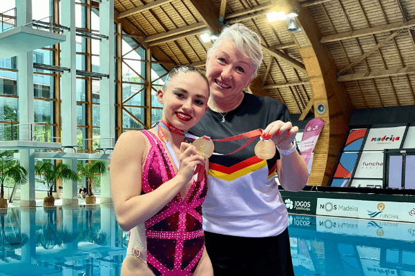 Fotounterschrift: Gold für Alexander Gorski und Silber für Erik Seibt vom Turm