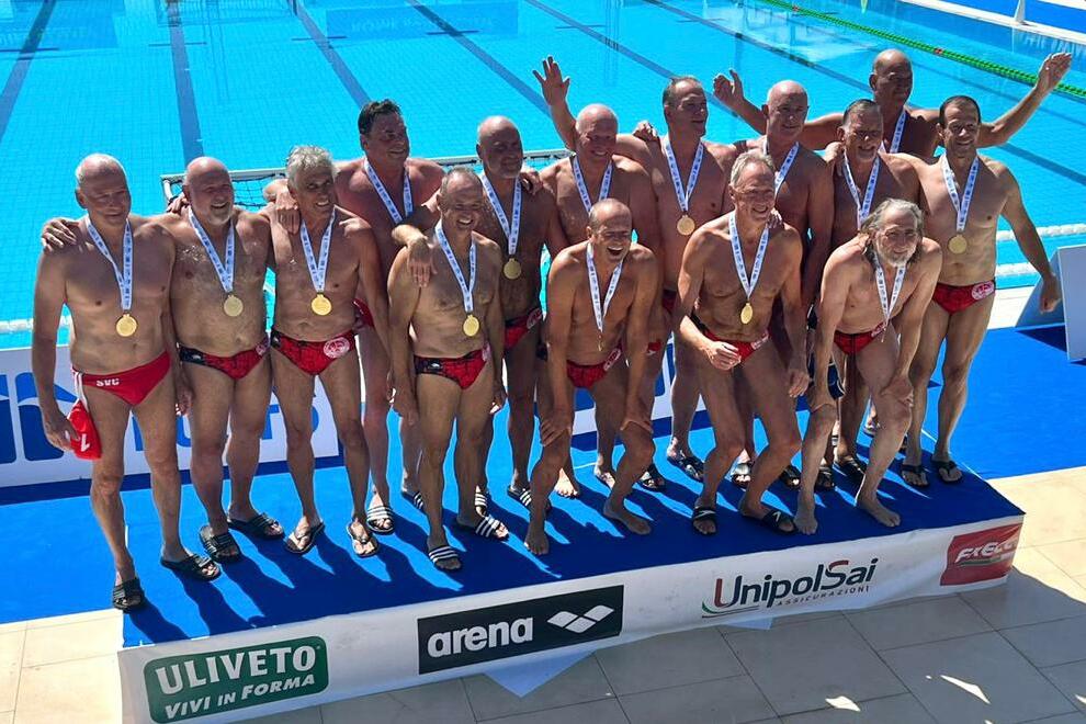 Von den 10 Wasserballteams, die am 29. August in das Turnier starteten, spielten sich 4 Mannschaften in das Finale. Europameister wurden die Männer des SV Cannstatt 60+ - siehe Foto -, Silber gewannen die Frauen der SG Essen (AK 40+) und die Spandau Buddies (AK 50+); Poseidon Hamburg siegte im deutschen Finale um Bronze in der AK 70+.