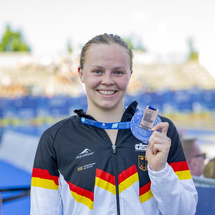 Zweimal Silber heimste Nina Holt am EM-Schlusstag ein. Erst wurde die 22-Jährige vom SC Magdeburg in 54,01 Sekunden Zweite über 100m Freistil, nur der Niederländerin Milou van Wijk (53,66) musste sie den Vortritt lassen. An der Seite von Julianna Dora Bocska, Julian Koch (beide SG Essen) und Martin Wrede (Waspo 98 Hannover) führte sie mit der schnellsten Splitzeit des gesamten Feldes (53,26) auch die Mixed-Staffel über 4x100m Freistil auf den Silberrang. Nach 3:27,16 Minuten fehlten Holt beim Anschlagduell mit Nikoletta Padar nur drei Hundertstel zu Sieger Ungarn. „Trotz der Ermüdung vom Höhentraining hier so schnell sein zu können und meine erste internationale Einzelmedaille zu gewinnen, das macht mich glücklich. Und stimmt natürlich auch optimistisch für die WM“, sagte Holt.