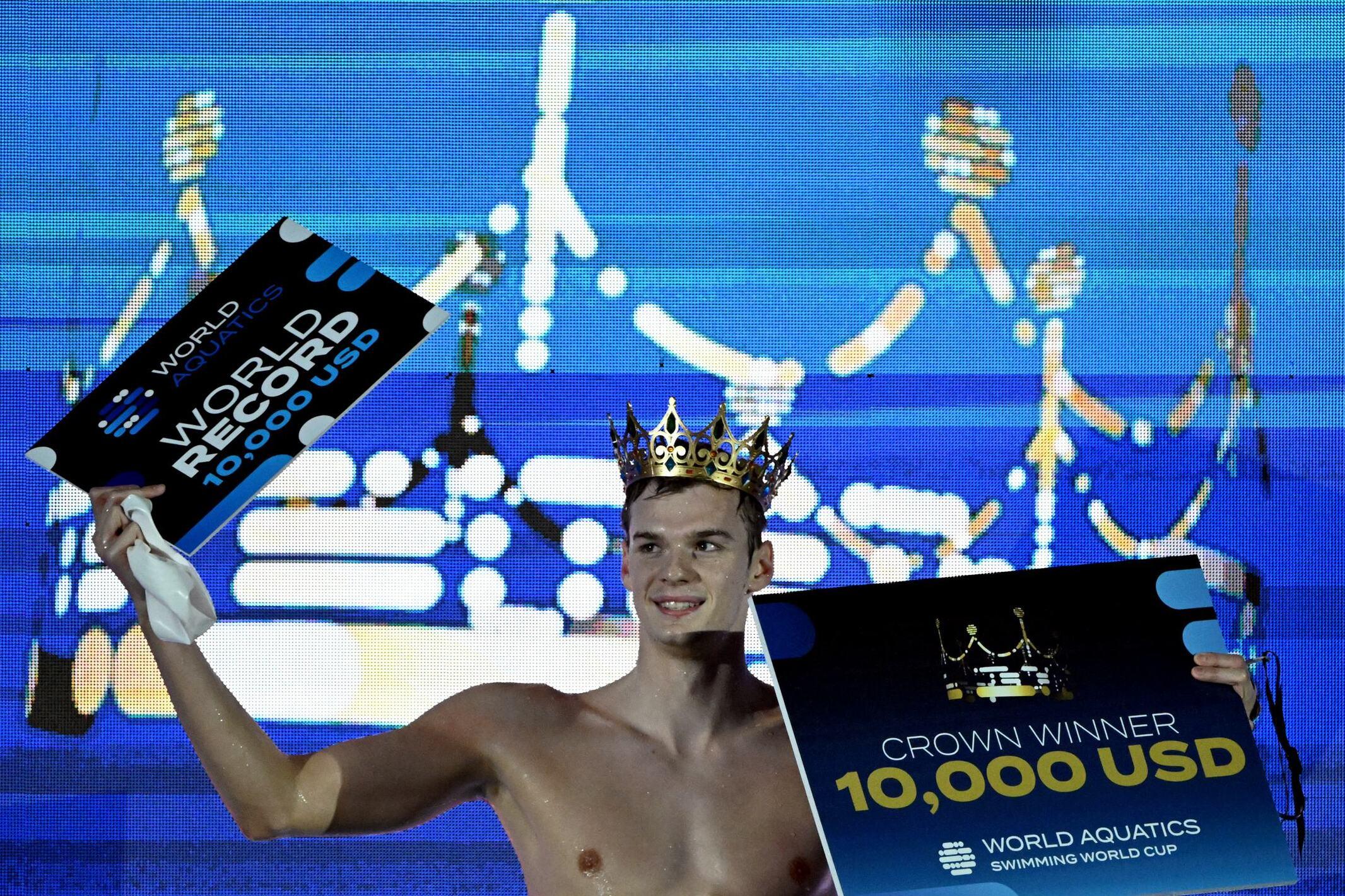 Auch Kos steuerte zu seiner Krönung noch einen Weltrekord bei. Nach der Bestmarke über 200m Rücken am Donnerstag schwamm der 22-Jährige am Samstag die 100m Rücken in 48,16 Sekunden und war damit schneller als der bisherige Rekordhalter Coleman Stewart (USA/48,33) im Jahr 2021. Nach 50 Metern lag der Trainingspartner von Léon Marchand (FRA) bei 23,07 Sekunden und damit fast vier Zehntel unter Stewarts Durchgangszeit. Dank seiner bekanntlich sehr guten Ausdauer reichte es am Ende dann tatsächlich zum Weltrekord – und dem neunten Sieg im neunten Rückenrennen beim diesjährigen Weltcup.