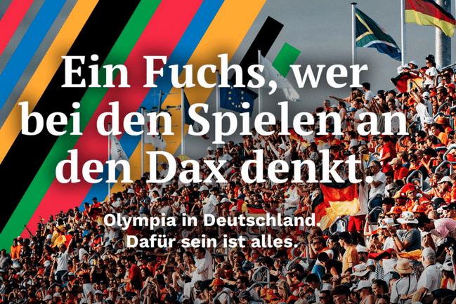 Natürlich ist es kein Zufall, dass die Initiative kurz vor dem Referendum zur Olympiabewerbung in München am 26. Oktober startete. Ein Slogan der begleitenden Kampagne lautet ja schließlich auch: „Ein Fuchs, wer bei den Spielen auch an den DAX denkt.“ Eine Ablehnung durch die Bürger*innen der bayrischen Landeshauptstadt gilt als nicht sehr wahrscheinlich. Das Umfrage-Institut Dimap soll laut dem Portal Sport&Politics für den DOSB Anfang Oktober ermittelt haben, dass bei der Briefwahl bereits 65 Prozent der Befragten für die Sommerspiele gestimmt haben, nur 31 Prozent dagegen.