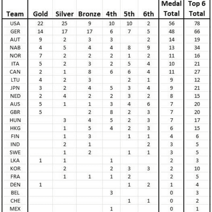 Am Ende der Weltmeisterschaften stand eine eindrucksvolle Bilanz: